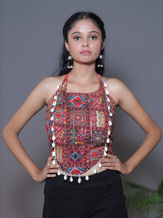 Viscose Blue Embellished Shirt with Sequin & Bead Details