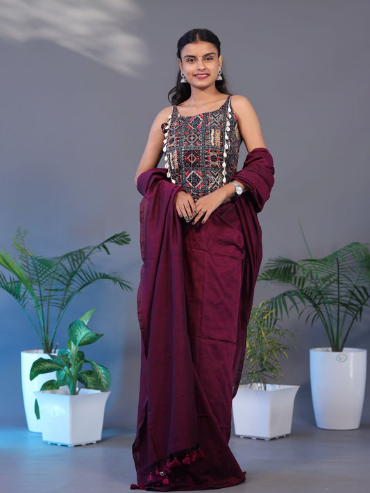 Bottlegreen Solid Viscose Gathered Tunic and Pants Co-ord Set with Thread Work