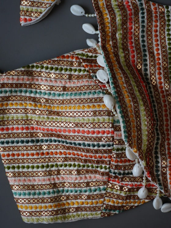 Design : Beautiful crop top with Kodi work, open back style, can go with Jeans, Saree & Lehnga as well.